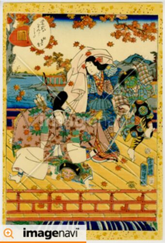 フォトグラファー H.YOSHINARIの浮世絵美術北枝の浮世絵 写真タイトル 江戸浮世絵「紫式部げんじかるた七 紅葉の賀」四代目歌川豊国(二代歌川国貞)画 安政4(1857)撮影者所蔵 二代歌川国貞の「紫式部げんじかるた」のシリーズです。 タイトルは紫式部の源氏…